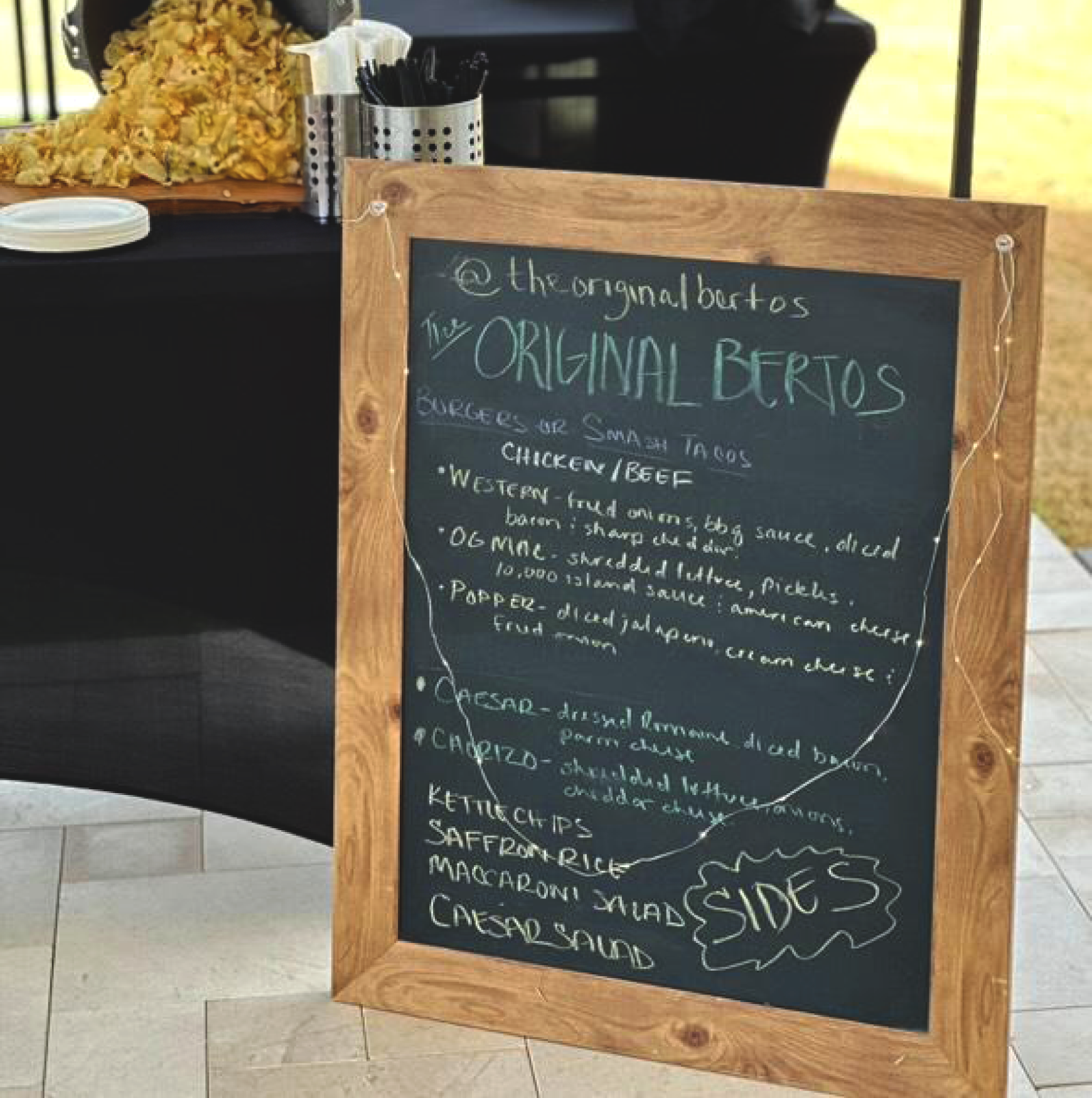 Original Berto's brings fresh, mouthwatering smash tacos and burgers right to your event. We handle the setup, cooking, and cleanup. Expect a fun, hassle-free experience with food that your guests will rave about!