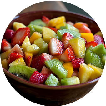 Fresh seasonal fruit salad & Mexican fruit cart salad, tajin, coconut, chamoy
